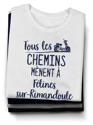En quelques clics vous pourrez commander les textiles de votre choix, arborant un message qui témoignera de votre attachement pour Félines-sur-Rimandoule. Félinois, Félinoise, les t-shirts, sweats, tabliers et totebags personnalisés que nous vous proposons sont déclinés en plusieurs coloris car vous le savez : les goûts et les couleurs...