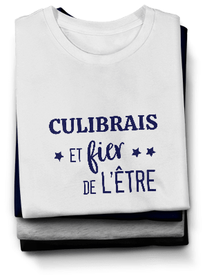 En quelques clics vous pourrez commander les textiles de votre choix, arborant un message qui témoignera de votre attachement pour Culètre. Culibrais, Culibraise, les t-shirts, sweats, tabliers et totebags personnalisés que nous vous proposons sont déclinés en plusieurs coloris car vous le savez : les goûts et les couleurs...