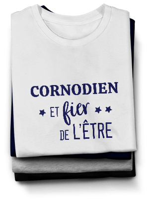 En quelques clics vous pourrez commander les textiles de votre choix, arborant un message qui témoignera de votre attachement pour Cornod. Cornodien, Cornodienne, les t-shirts, sweats, tabliers et totebags personnalisés que nous vous proposons sont déclinés en plusieurs coloris car vous le savez : les goûts et les couleurs...