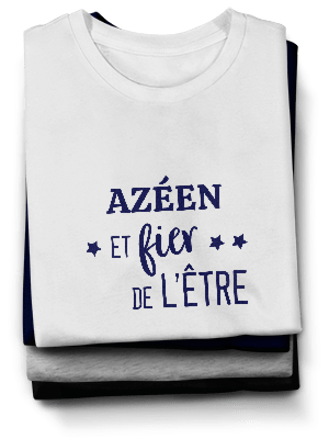 En quelques clics vous pourrez commander les textiles de votre choix, arborant un message qui témoignera de votre attachement pour Azé. Azéen, Azéenne, les t-shirts, sweats, tabliers et totebags personnalisés que nous vous proposons sont déclinés en plusieurs coloris car vous le savez : les goûts et les couleurs...