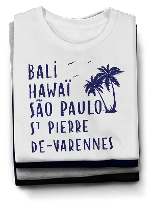 En quelques clics vous pourrez commander les textiles de votre choix, arborant un message qui témoignera de votre attachement pour Saint-Pierre-de-Varennes. Varennois, Varennoise, les t-shirts, sweats, tabliers et totebags personnalisés que nous vous proposons sont déclinés en plusieurs coloris car vous le savez : les goûts et les couleurs...