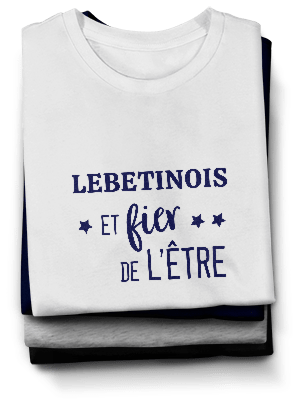 En quelques clics vous pourrez commander les textiles de votre choix, arborant un message qui témoignera de votre attachement pour Lebetain. Lebetinois, Lebetinoise, les t-shirts, sweats, tabliers et totebags personnalisés que nous vous proposons sont déclinés en plusieurs coloris car vous le savez : les goûts et les couleurs...