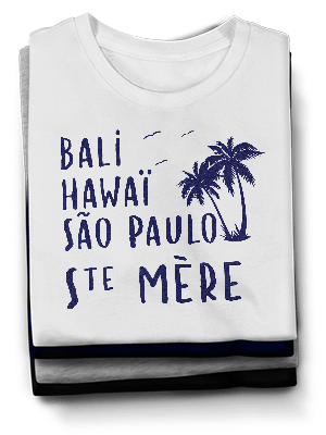 En quelques clics vous pourrez commander les textiles de votre choix, arborant un message qui témoignera de votre attachement pour Sainte-Mère. Sainte-Mérois, Sainte-Méroise, les t-shirts, sweats, tabliers et totebags personnalisés que nous vous proposons sont déclinés en plusieurs coloris car vous le savez : les goûts et les couleurs...