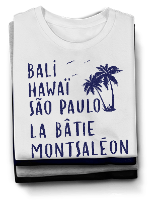 En quelques clics vous pourrez commander les textiles de votre choix, arborant un message qui témoignera de votre attachement pour La Bâtie-Montsaléon. habitant de La Bâtie-Montsaléon, habitante de La Bâtie-Montsaléon, les t-shirts, sweats, tabliers et totebags personnalisés que nous vous proposons sont déclinés en plusieurs coloris car vous le savez : les goûts et les couleurs...